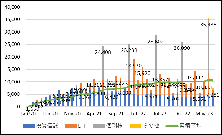 諸事情ありかなり時間があいてしまいましたが前回に引き続き、運用状況から配当金や分配金のみの推移についても公開していきます。
